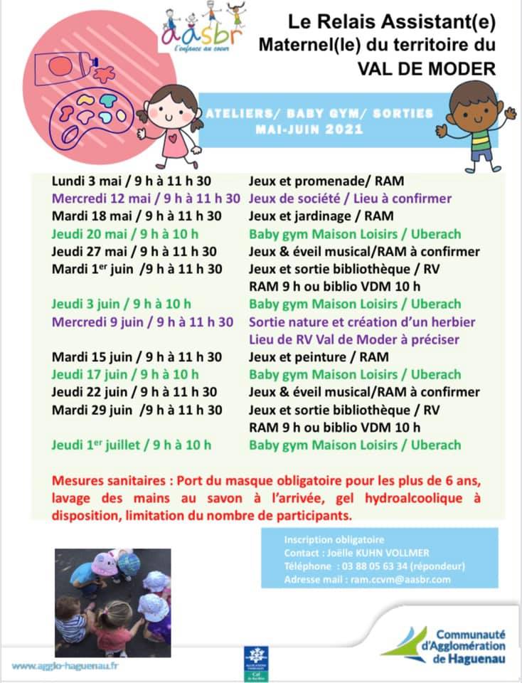 | Relais des Assistantes Maternelles et des Parents du Val de Moder | Le RAM vous propose son programme pour mai et juin 2021.