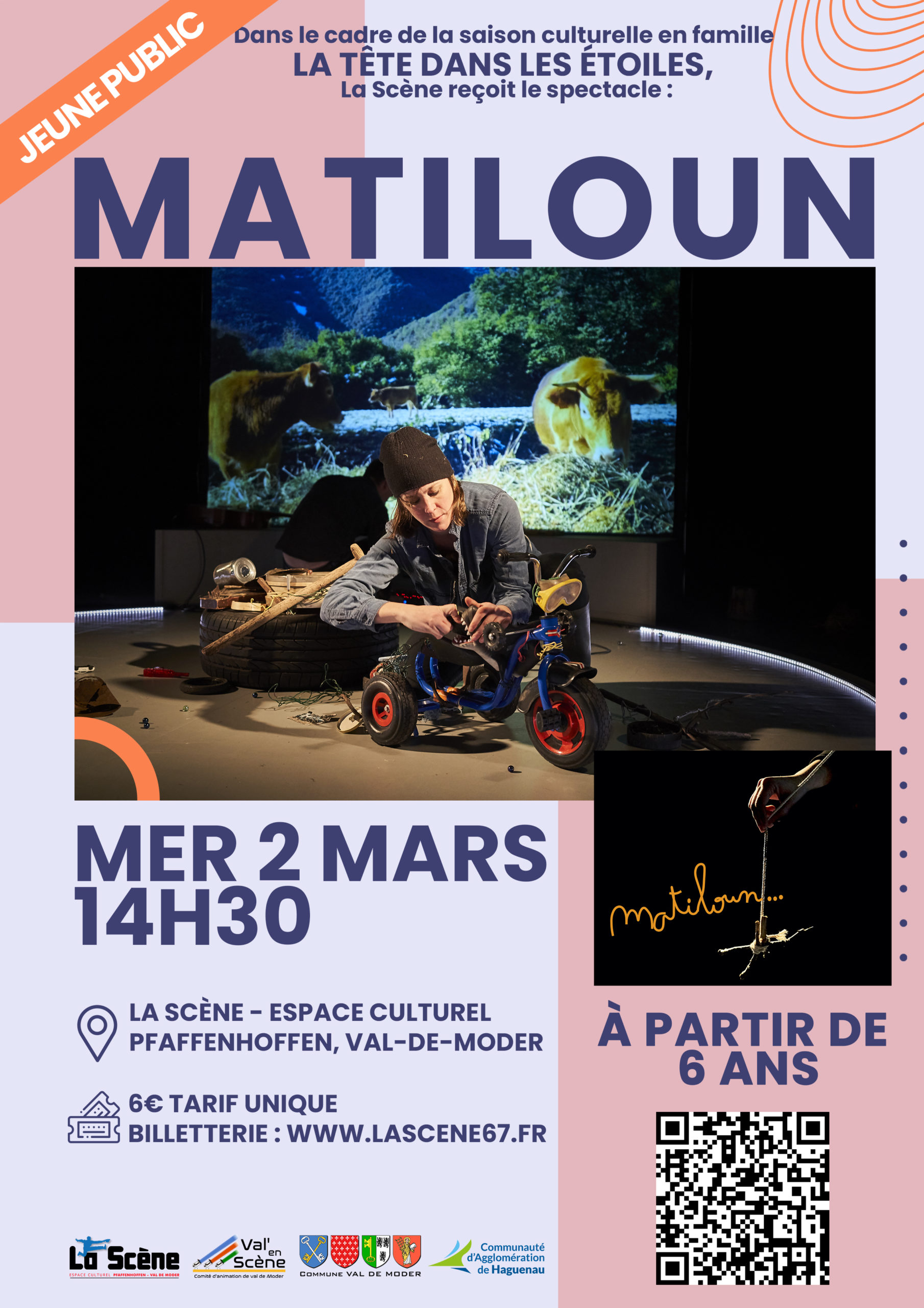 Dans le cadre de la saison culturelle en famille "La tête dans les étoiles", La Scène reçoit le spectacle : MATILOUN